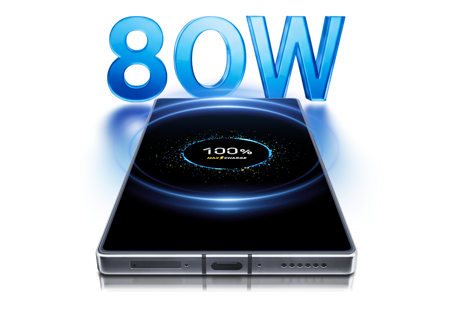 Stay in the game with a massive battery design that supports charge separation, reduces heat, and extends battery lifespan. Paired with up to 80W wired and wireless fast charging, you can power up safely and efficiently anytime.