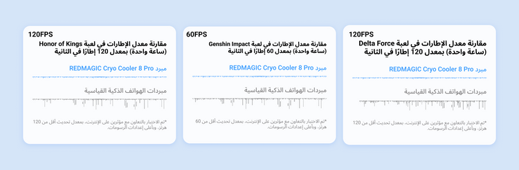 *البيانات من مختبرات REDMAGIC. بدءًا من مصدر حرارة ثابت بقدرة 10 واط عند 95 درجة مئوية، وبعد 20 دقيقة من التبريد باستخدام REDMAGIC 8 Pro (وضع رفع تردد التشغيل)، انخفضت درجة حرارة السطح المقاسة إلى 15 درجة مئوية - أي بانخفاض قدره 80 درجة مئوية. أثناء تشغيل الألعاب عالية السرعة بكامل الشاشة، يبقى مصدر الحرارة المركزي للهاتف الذكي عادةً في حدود 10 واط.